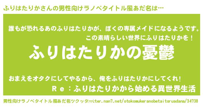 | 胡散臭い通販商品みたいなあだ名 | 『モテモテ間違いなし霊験あらたかなお札…その名も「ふりはたりか」』 |