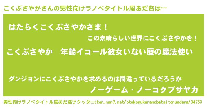 | 女子向けラノベタイトル風あだ名 | 『こくぶさやかの玉の輿計画!』 |