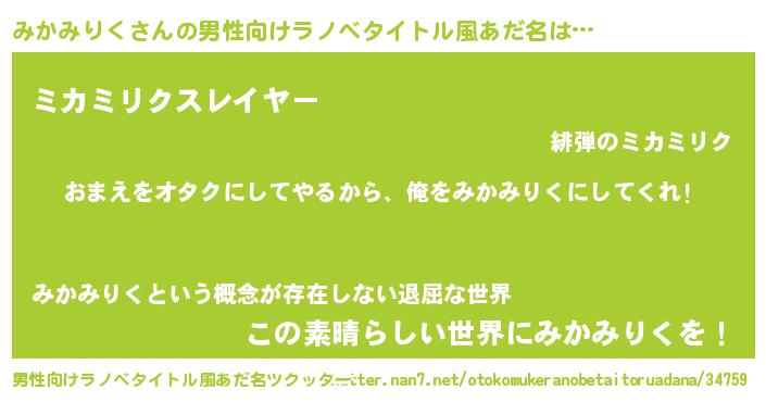 | 女子向けラノベタイトル風あだ名 | 『みかみりく恋絵巻』 |
