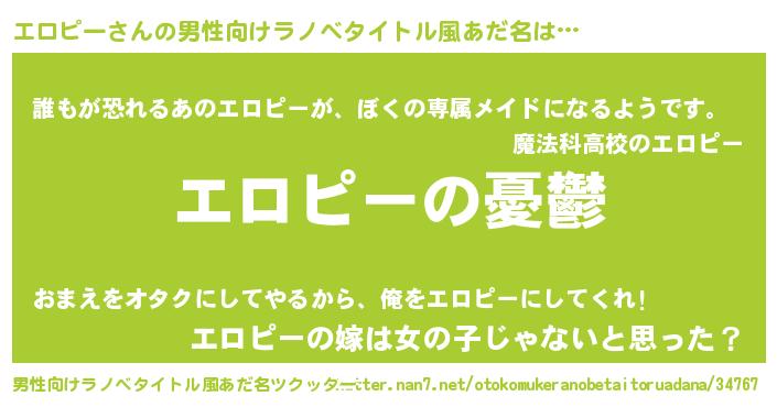 | 女子向けラノベタイトル風あだ名 | 『(仮)エロピーのやんごとなき事情』 |