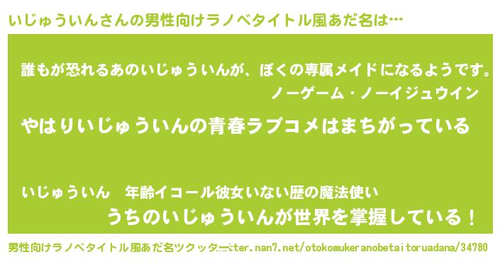 | 胡散臭い通販商品みたいなあだ名 | 『世界が平和になる高級そうな絵画…その名も「いじゅういん」』 |