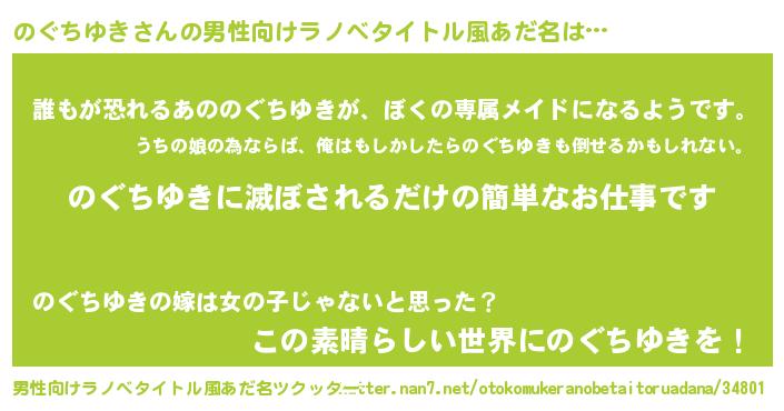 | 胡散臭い通販商品みたいなあだ名 | 『前代未聞の健康食品…その名も「のぐちゆき」』 |