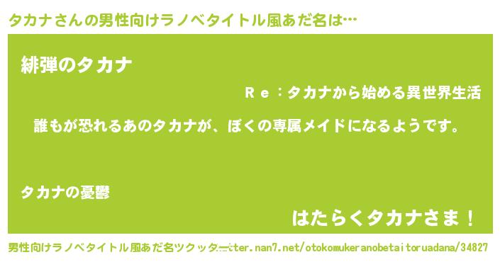 | 意味不明あだ名 | 『永久保存タカナ』『自称タカナ』 |
