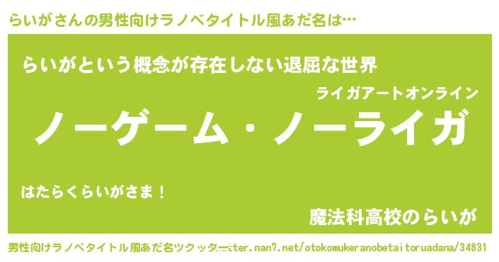 | ヘコむあだ名 | 『らいが(震え声)』『らいもー』 |