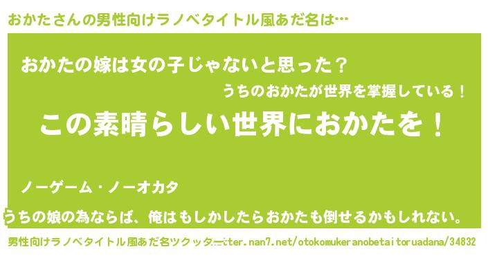 | 胡散臭い通販商品みたいなあだ名 | 『世界中を虜にした世界で10本だけ現存している希少なブランデー…その名も「おかた」』 |