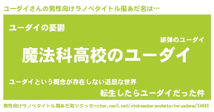 | 女子向けラノベタイトル風あだ名 | 『ユーダイなんてお断りですっ。』 |