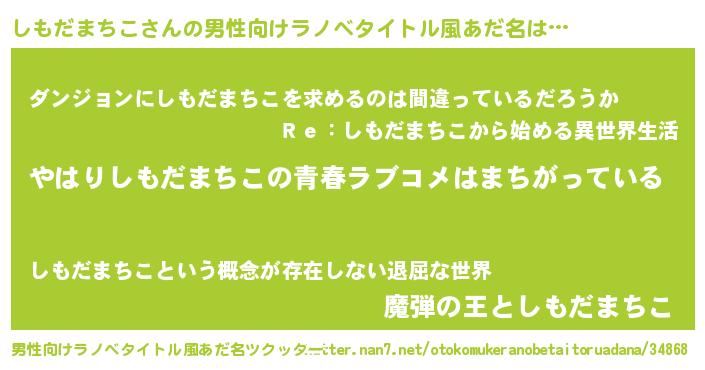 | 女子向けラノベタイトル風あだ名 | 『しもだまちこ伯爵の花嫁』 |