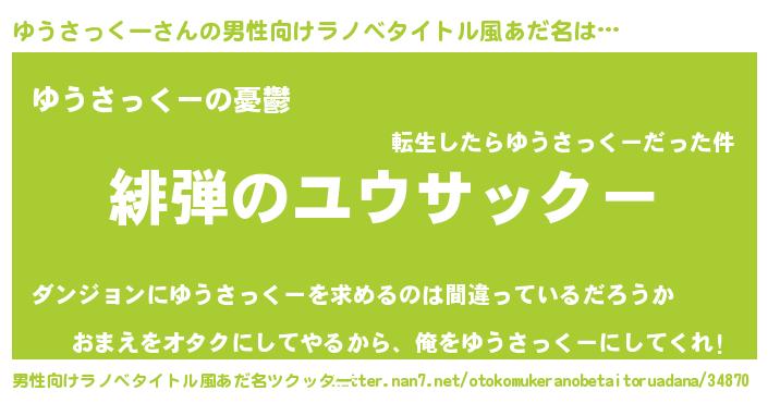 | ヒーロー風カッコイイあだ名 | 『スーパーユウサックー』『暗黒騎士ユウ』 |