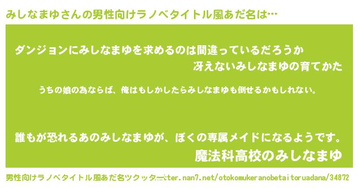 | 女子向けラノベタイトル風あだ名 | 『みしなまゆの婚約者』 |