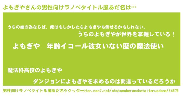 | 女子向けラノベタイトル風あだ名 | 『よもぎやの玉の輿計画!』 |
