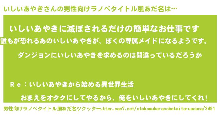| 女子向けラノベタイトル風あだ名 | 『いしいあやきは平凡を望む』 |