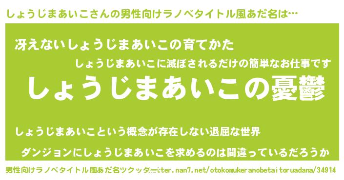 | 女子向けラノベタイトル風あだ名 | 『しょうじまあいこ姫と円卓の騎士』 |
