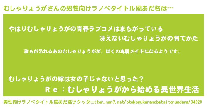 | 意味不明あだ名 | 『永久保存むしゃりょうが』 |