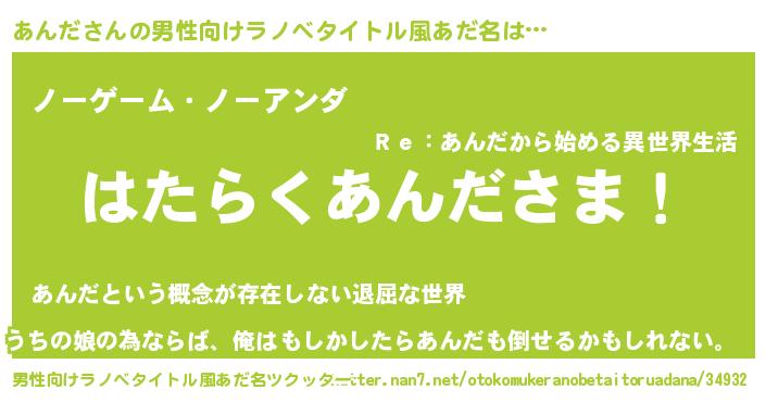 | 女子向けラノベタイトル風あだ名 | 『首の姫と首なしあんだ』『闇のあんだ』 |