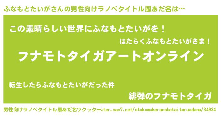 | 胡散臭い通販商品みたいなあだ名 | 『モテモテ間違いなし霊験あらたかなお札…その名も「ふなもとたいが」』 |