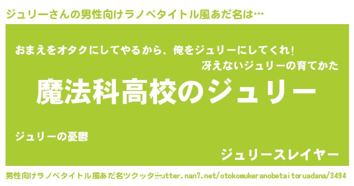 | 女子向けラノベタイトル風あだ名 | 『ジュリーなんてお断りですっ。』 |