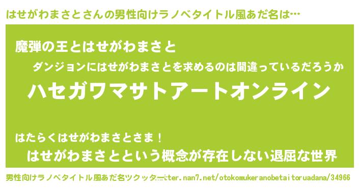 | 女子向けラノベタイトル風あだ名 | 『はせがわまさと姫と円卓の騎士』 |