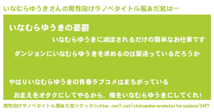 | 女子向けラノベタイトル風あだ名 | 『いなむらゆうきは平凡を望む』 |