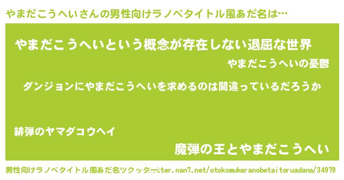 ヘコむあだ名 | 『やまぷりん』『やまだこうへい(笑)』 |