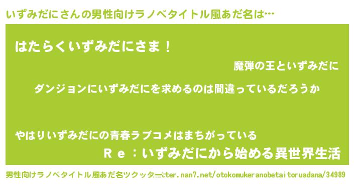 | 胡散臭い通販商品みたいなあだ名 | 『信頼と実績のサプリメント…その名も「いずみだに」』 |
