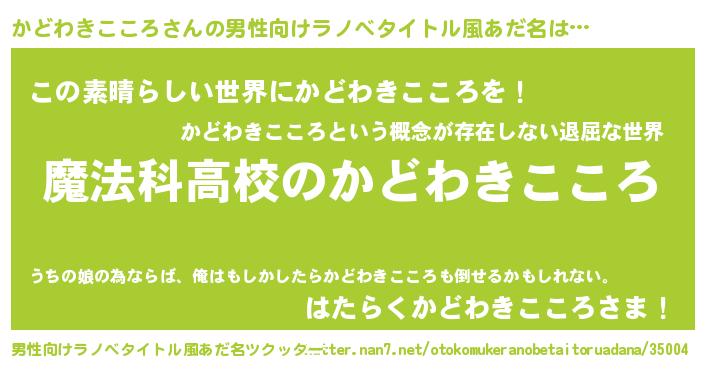 | ヒーロー風カッコイイあだ名 | 『ウルトラ戦士カドワキココロ』 |