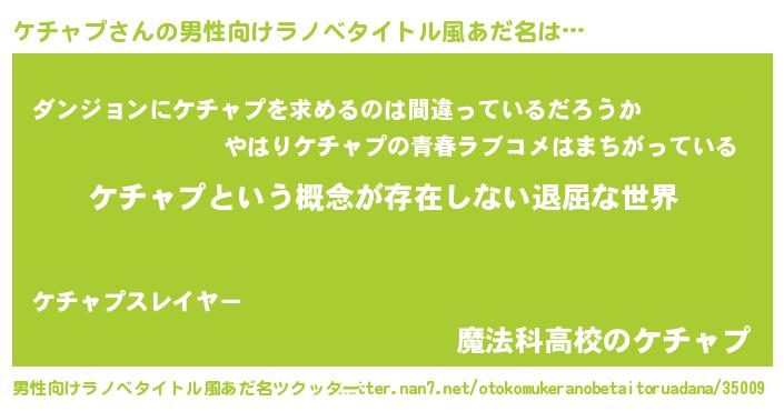 | 女子向けラノベタイトル風あだ名 | 『ケチャプの契約王妃』 |