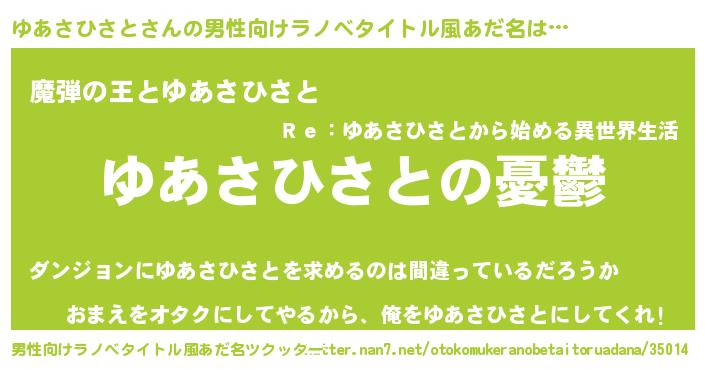 | 女子向けラノベタイトル風あだ名 | 『(仮)ゆあさひさとのやんごとなき事情』 |