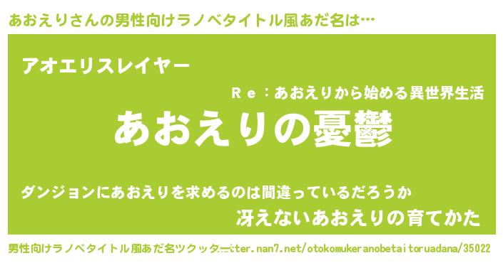 | 意味不明あだ名 | 『ペロリンあおえり』『自称あおえり』 |