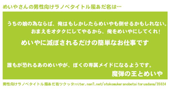 | ポケモン風あだ名 | 『メイゴンZ』『メイヤダネ』 |