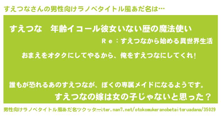 | 女子向けラノベタイトル風あだ名 | 『すえつな夫妻のなれそめ』 |