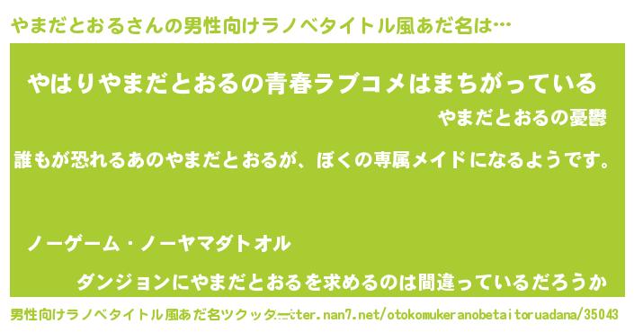| 女子向けラノベタイトル風あだ名 | 『異世界でカフェやまだとおるを開店しました。』 |