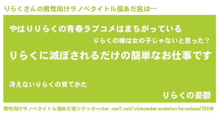 | 意味不明あだ名 | 『りらくフォーエバー』『ペロリンりらく』 |