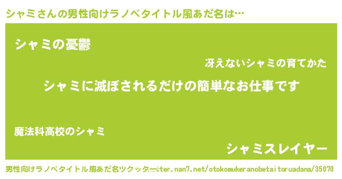 | 胡散臭い通販商品みたいなあだ名 | 『億万長者になれるブレスレット…その名も「シャミ」』 |
