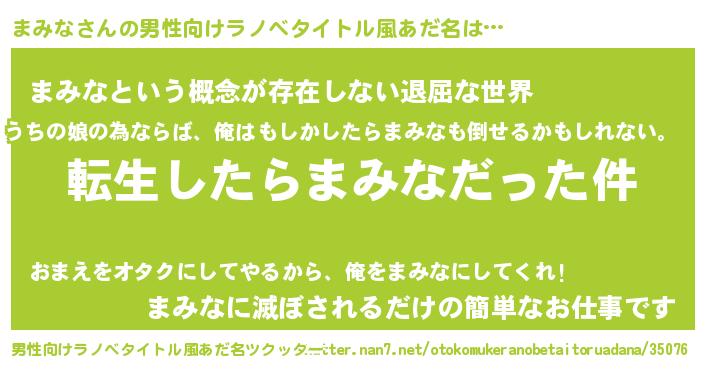 | ヒーロー風カッコイイあだ名 | 『ネオマミナ』『ウルトラまみなマン』 |