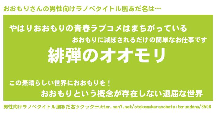 | 胡散臭い通販商品みたいなあだ名 | 『幸せが訪れる高級そうな壺…その名も「おおもり」』 |
