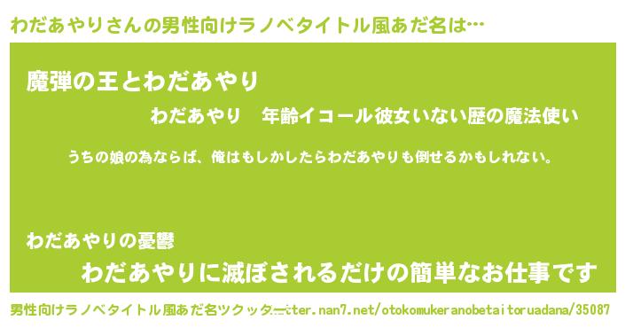 | 女子向けラノベタイトル風あだ名 | 『わだあやりの婚約者』 |