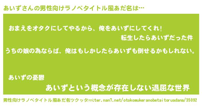 | ヘコむあだ名 | 『酢こんぶ』『あいず(苦笑)』 |