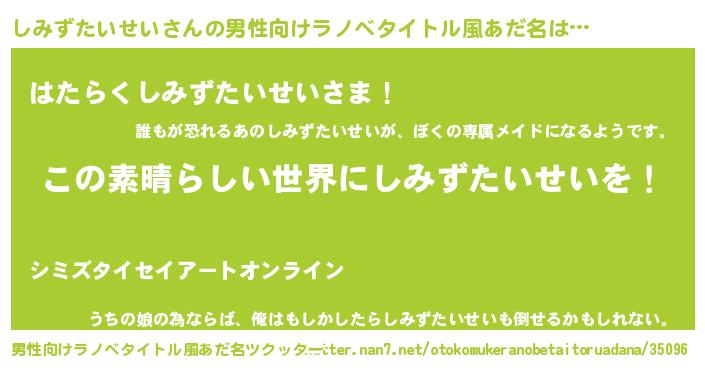 | 女子向けラノベタイトル風あだ名 | 『悪役しみずたいせいに転生したようですが、知った事ではありません』 |