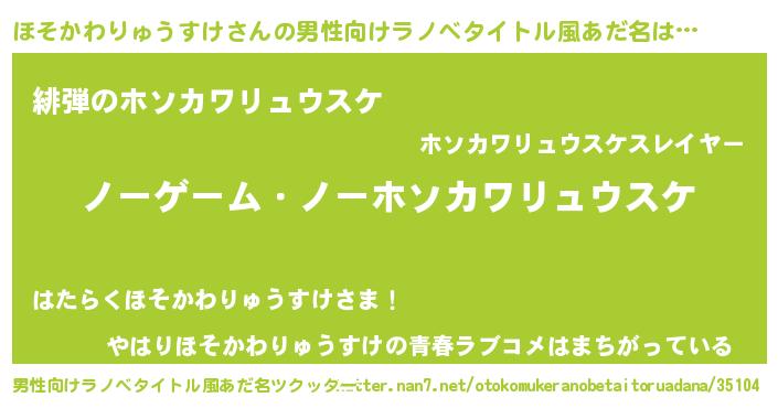 | 女子向けラノベタイトル風あだ名 | 『ほそかわりゅうすけ恋絵巻』 |