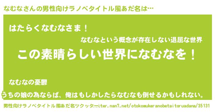 | ヒーロー風カッコイイあだ名 | 『仮面ナムダー』『ウルトラなむなマン』 |