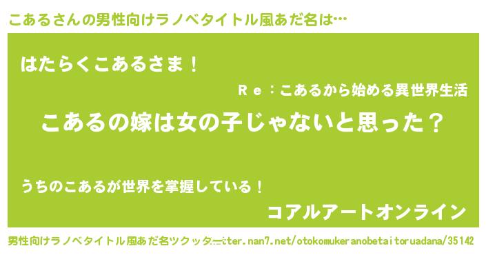 | ヘコむあだ名 | 『こあっちょ』『こあもー』 |