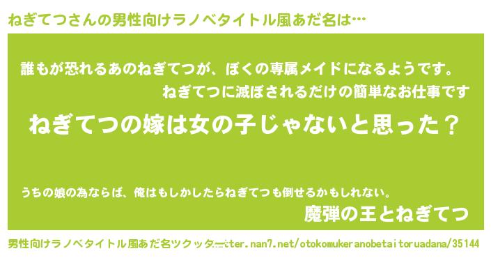 | 女子向けラノベタイトル風あだ名 | 『ねぎてつ様がみてる』 |