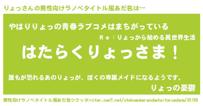 | ファンタジー風あだ名 | 『エターナルリョッー』『リョフェル』 |