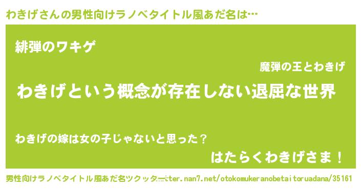 | 胡散臭い通販商品みたいなあだ名 | 『来世でも幸せになれる健康食品…その名も「わきげ」』 |