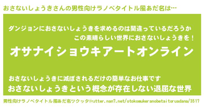 | ヒーロー風カッコイイあだ名 | 『スーパーオサナイショウキ』 |