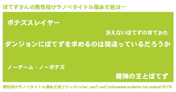| 女子向けラノベタイトル風あだ名 | 『ぽてずの卵を拾いまして』 |