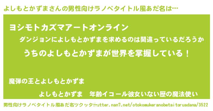 | 胡散臭い通販商品みたいなあだ名 | 『億万長者になれるブレスレット…その名も「よしもとかずま」』 |