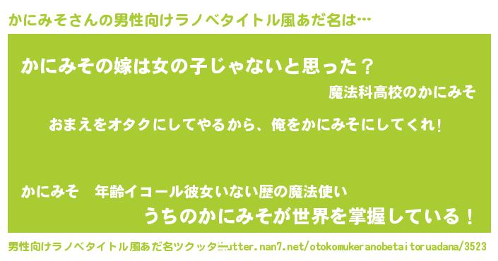 | 女子向けラノベタイトル風あだ名 | 『かにみそ夫妻のなれそめ』 |