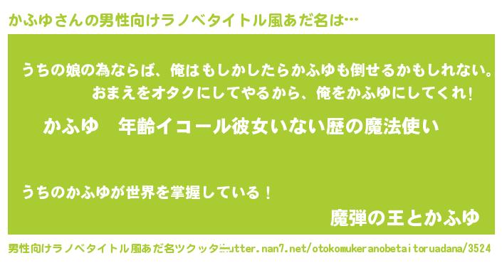 | 女子向けラノベタイトル風あだ名 | 『かふゆの玉の輿計画!』 |