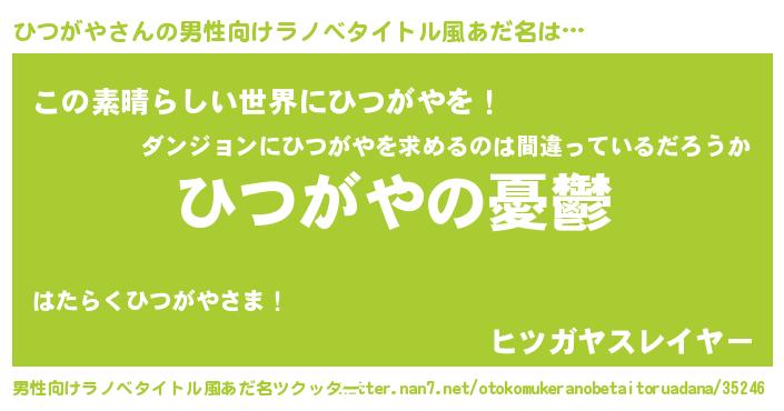 | 胡散臭い通販商品みたいなあだ名 | 『モテモテ間違いなしブレスレット…その名も「ひつがや」』 |
